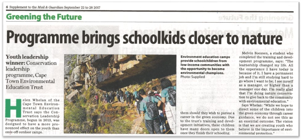 We are honoured to have won the Mail & Guardian Newspaper’s “Greening the Future Award” for Youth Leadership! Our Conservation Leadership Programme was awarded this…